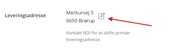 Din primære leveringsadresse kan kun ændres, hvis du kontakter NDI.
