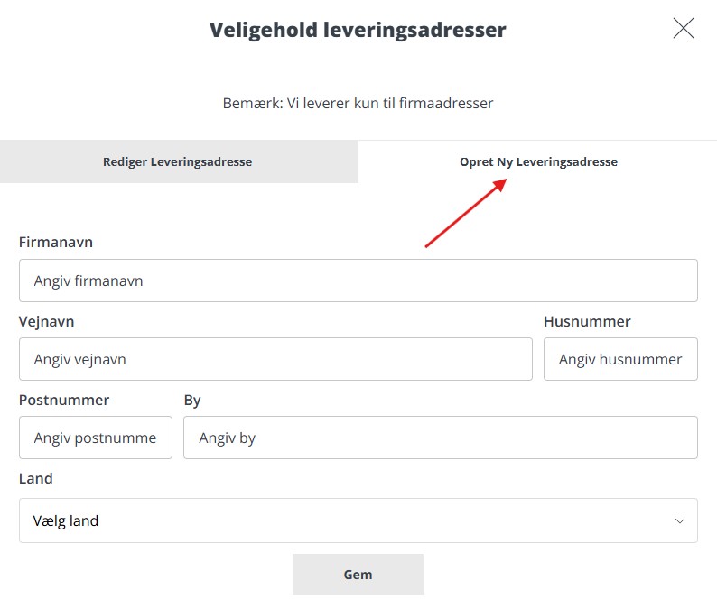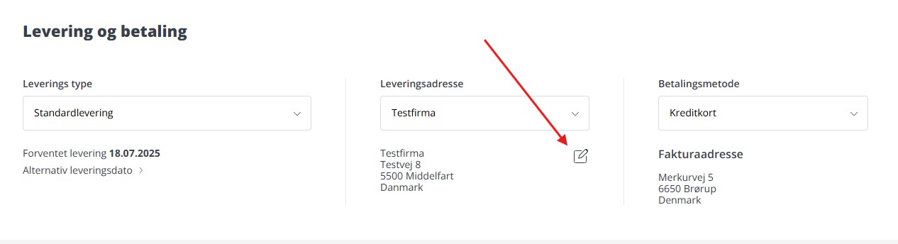 Herfra kan du redigere en (alternativ) leveringsadresse eller tilføje en ny.